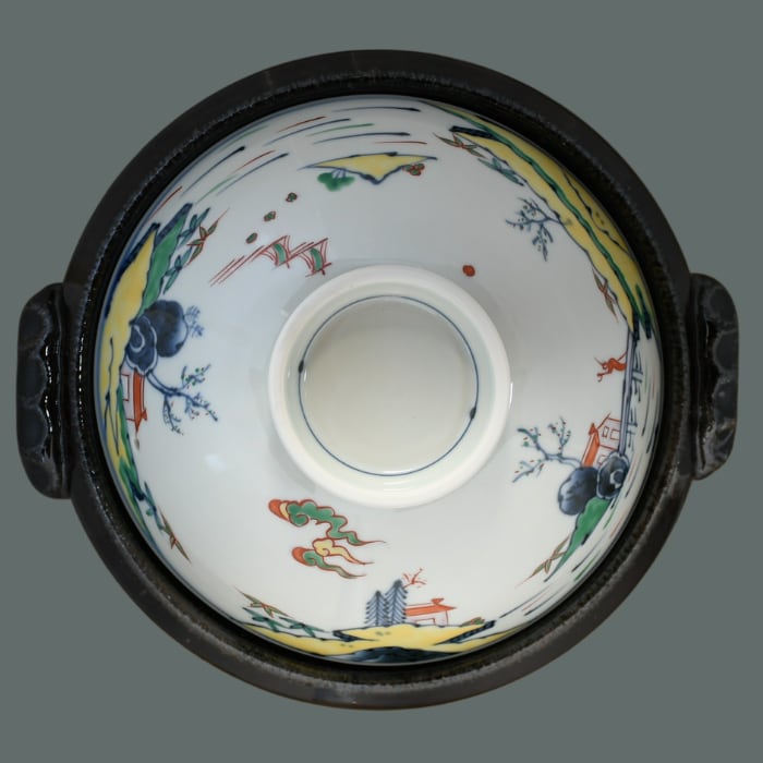 有田焼 福泉窯 手描き 染錦山水 10号土鍋(3〜5人用)